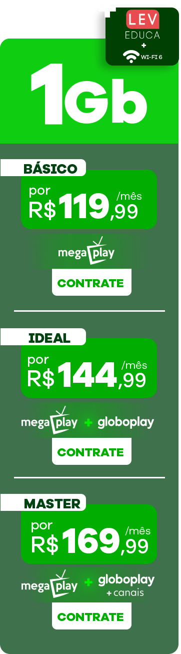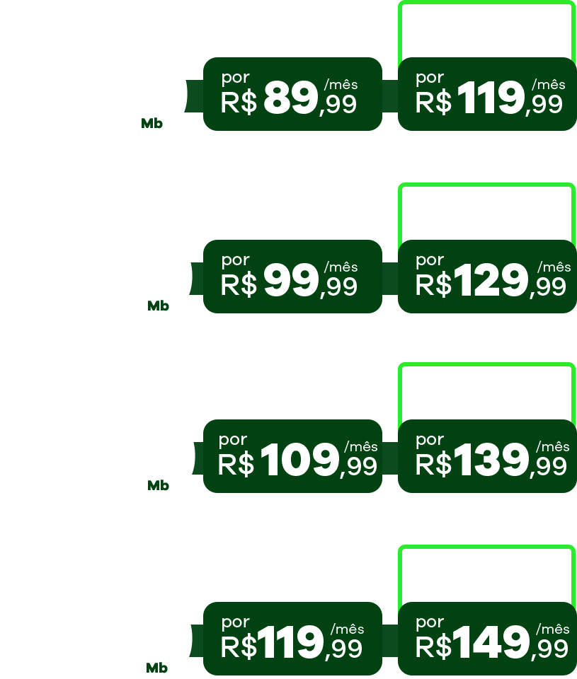 Velocidades a partir de 60Mb tem instalação gratuita.